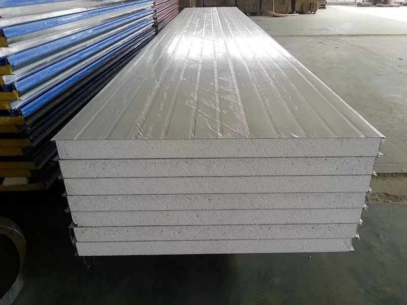 Панели сэндвичии EPS маъмулан аз ду қабати берунӣ иборат аст, ки аксар вақт аз пӯлод ё алюминий сохта шудаанд, ки ядрои EPS-ро сандвич мекунанд. Асоси EPS хосиятҳои истисноии изолятсияро таъмин намуда, интиқоли гармиро тавассути панел коҳиш медиҳад, дар ҳоле ки қабатҳои металлӣ қувват ва устувориро пешниҳод мекунанд.