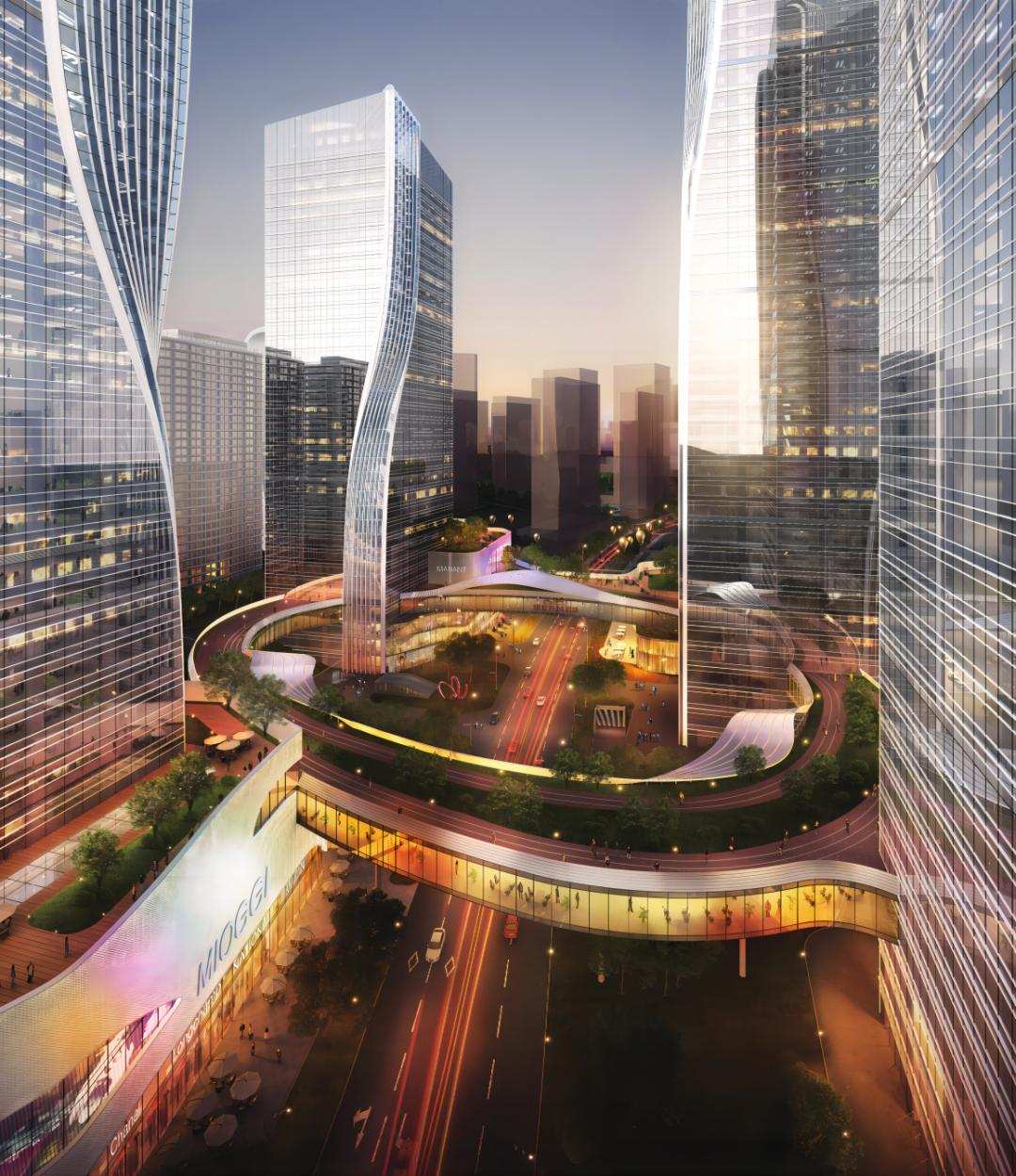 Ин маҷмааи дугонаи дугонаи дугона 57 хекторро бо майдони умумии 220,000 SQM, хориҷ кардани офисҳо, меҳмонхонаҳо, чакана, чакана ва вақтхушӣ ҷойгир мекунад. Деворҳои пардаи шишаи он, ки зиёда аз 7,200 метр тасмаҳои сабукро ороста шудаанд, эҷод кардани намунаҳои динамикӣ дар масофаи 11,000 SQM, таҳвили таъсири визуали визуалӣ.