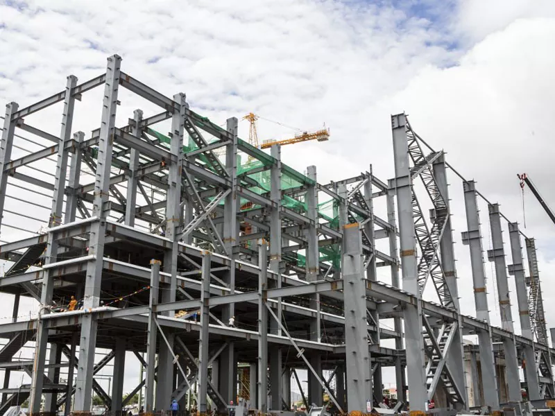 Пас аз он, ки чаҳорчӯбаи пӯлод ба итмом расад, системаи сақф дар сақф ҷойгир карда шудааст, ки маъмулан аз панелҳои металлии изолятсияшуда ё маводҳои якмарронӣ. Деворҳои берунӣ, агар дар тарроҳӣ дохил карда шаванд, бо истифода аз панелҳои металлӣ, хишт ё дигар маводи клиплинг ҷойгир карда шудаанд. Ин унсурҳо муқовимати обу ҳаворо таъмин мекунанд ва ба муроҷиати эстетикии сохтмон мусоидат мекунанд.