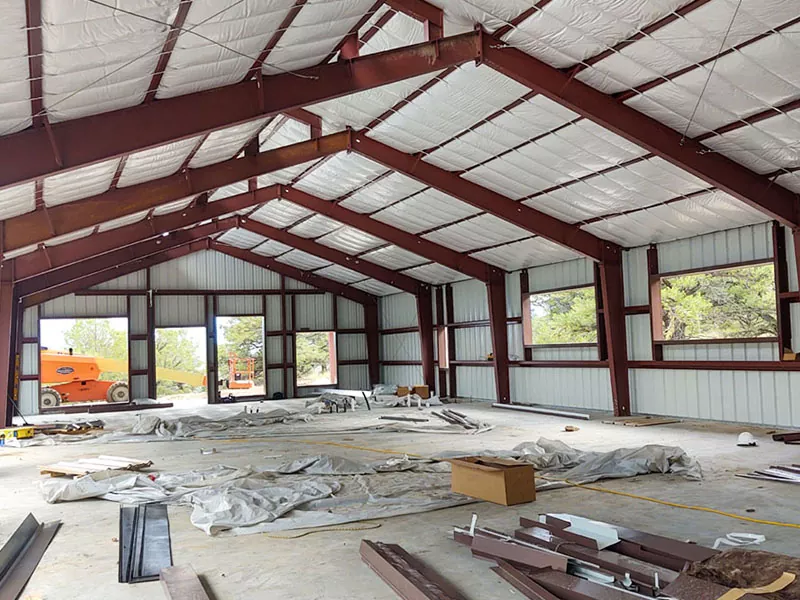 Сақф ва қуллаи берунӣ:Пас аз он, ки чаҳорчӯбаи пӯлод ба итмом расидааст, системаи бомпӯшкунӣ насб карда мешавад, одатан иборат аст аз панелҳои металлӣ ё маводҳои якмоҳа. Деворҳои берунӣ, агар ба тарроҳӣ дохил карда шаванд, бо истифодаи маводҳо ба монанди панелҳои металлӣ ё хишт сохта шудаанд.