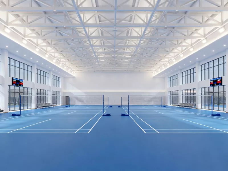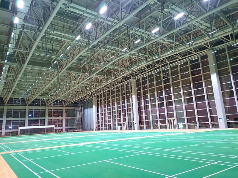 Дар доираи рушди биноҳои муосири варзишӣ, сохтори пӯлод Бадминтон Толори тадриҷан шакли сохтории беҳтарро дар сохтмони майдонҳои Бадминтон мегардад. Чорчӯбаи асосӣ аз чӯбҳои пӯлод иборат аст ва сутунҳои пӯлод, таъсири эстетикӣ ва нишондиҳандаҳои иқтисодӣ, ки стандартҳои майдонҳои касбии варзиширо нишон медиҳанд. Ҳамчун як макони пӯшида, як толори бади Бадминтон бояд системаи хуб вентилятсия ва эффекти гармии гармӣ дошта бошад. Толори деворригатсияшуда метавонад масолеҳи девори аз ҷиҳати экологӣ тоза ва гармии гармтаринро истифода барад, панелҳои офтобӣ дар сақф барои тавлиди нерӯи барқ ​​барои системаи вентилятсия насб карда шаванд.
