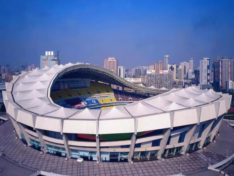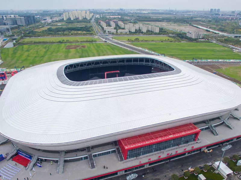 1. Стадияи футболи пӯлод пӯлоди футболи баландро ҳамчун маводи асосӣ ҳамчун маводи асосӣ, инчунин вазни сабук, сейсмикӣ ва муқовимати зебои шамол истифода мебарад.